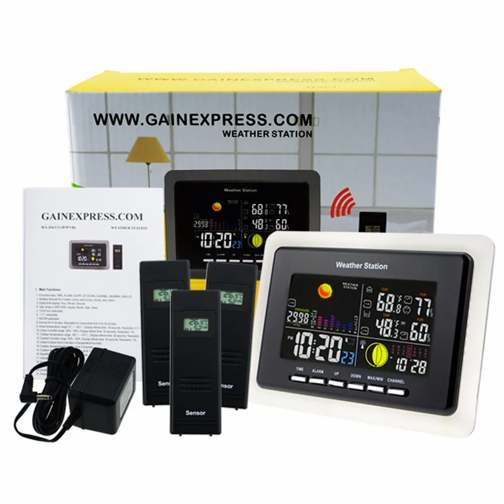 Best Seller Weather Station + 3 Wireless Sensor 5 Weather Forecast LED Backlight Humidity Temperature DCF77 as