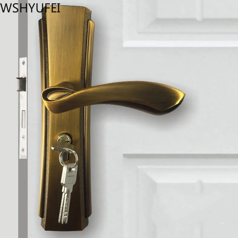 Yellow bronze indoor bedroom mute solid wood room door lock left and right universal handle lock Ne