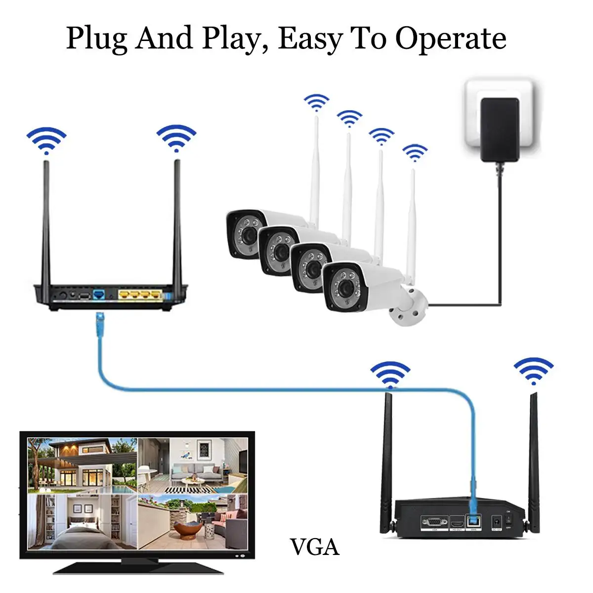 HIGH QUALITY HD 1080P 4CH WiFi Wireless NVR Kits Video Surveillance System Indoor/Outdoor IP Cameras Motion Dete