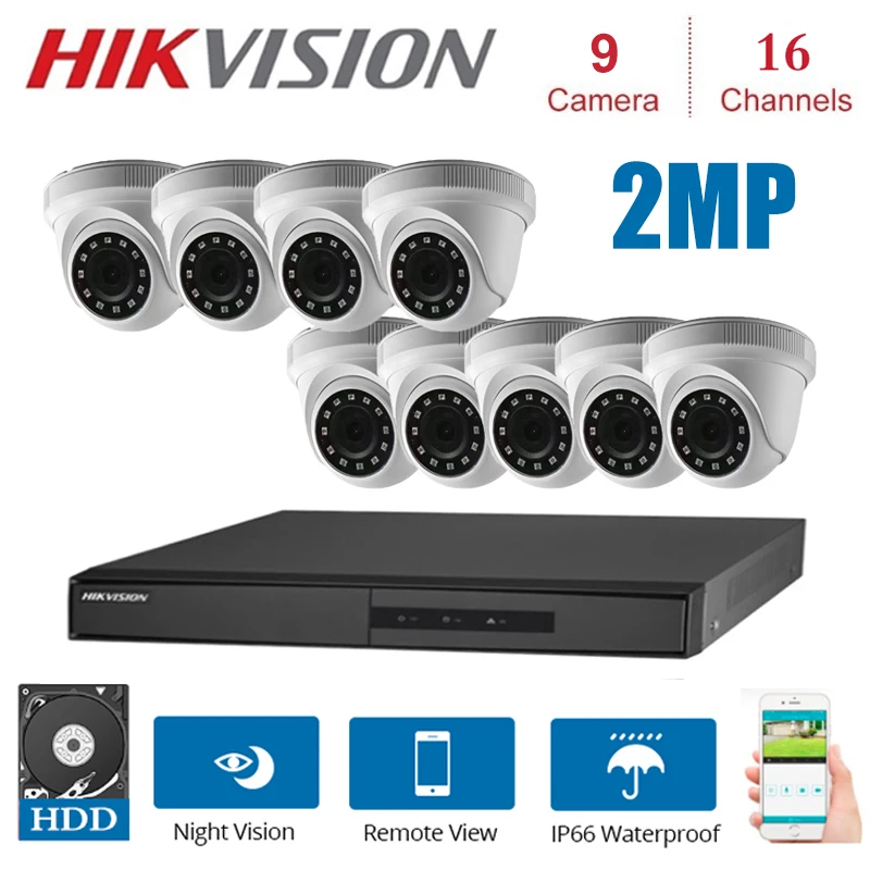 Best Quality 1080P 16 Channels Hikvision Surveillance Kits with 9 *Indoor 2MP 4 in 1HD Camera Security Night vis