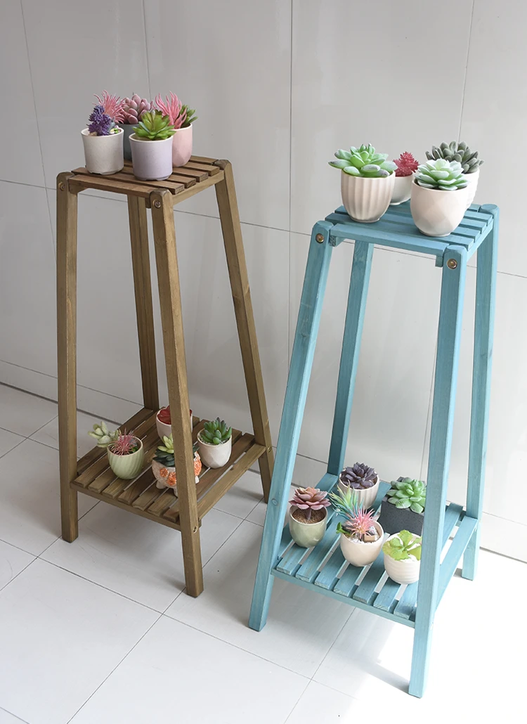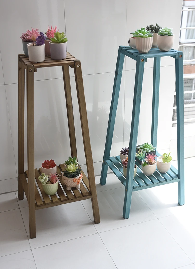 HOT SALE Landing Type Double-deck Airs Wood Living Room Flowerpot Frame Two Layer Chlorophytum Single Solid