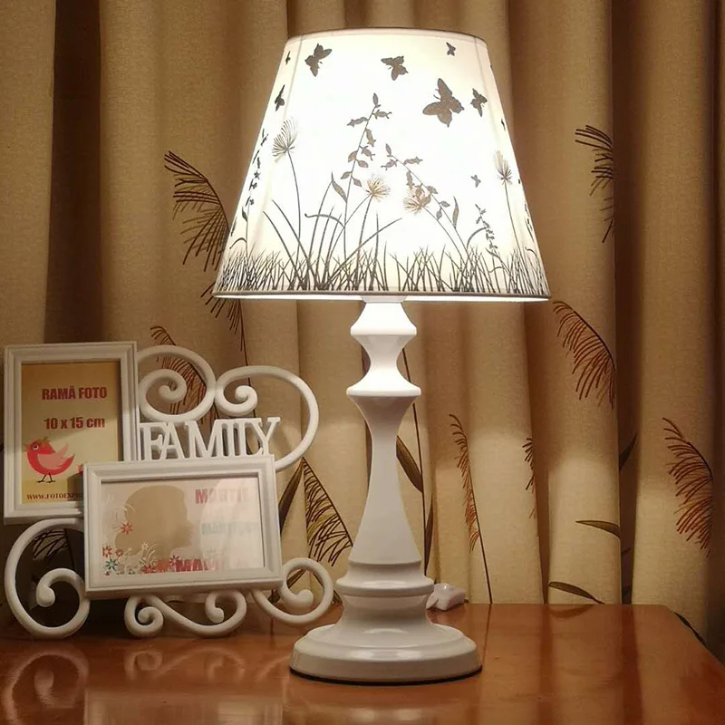 BEST Modern Bedroom Bedside Lamp American Linen Lampshade Iron Base Living Room Lamp Simple Hotel Bedsid